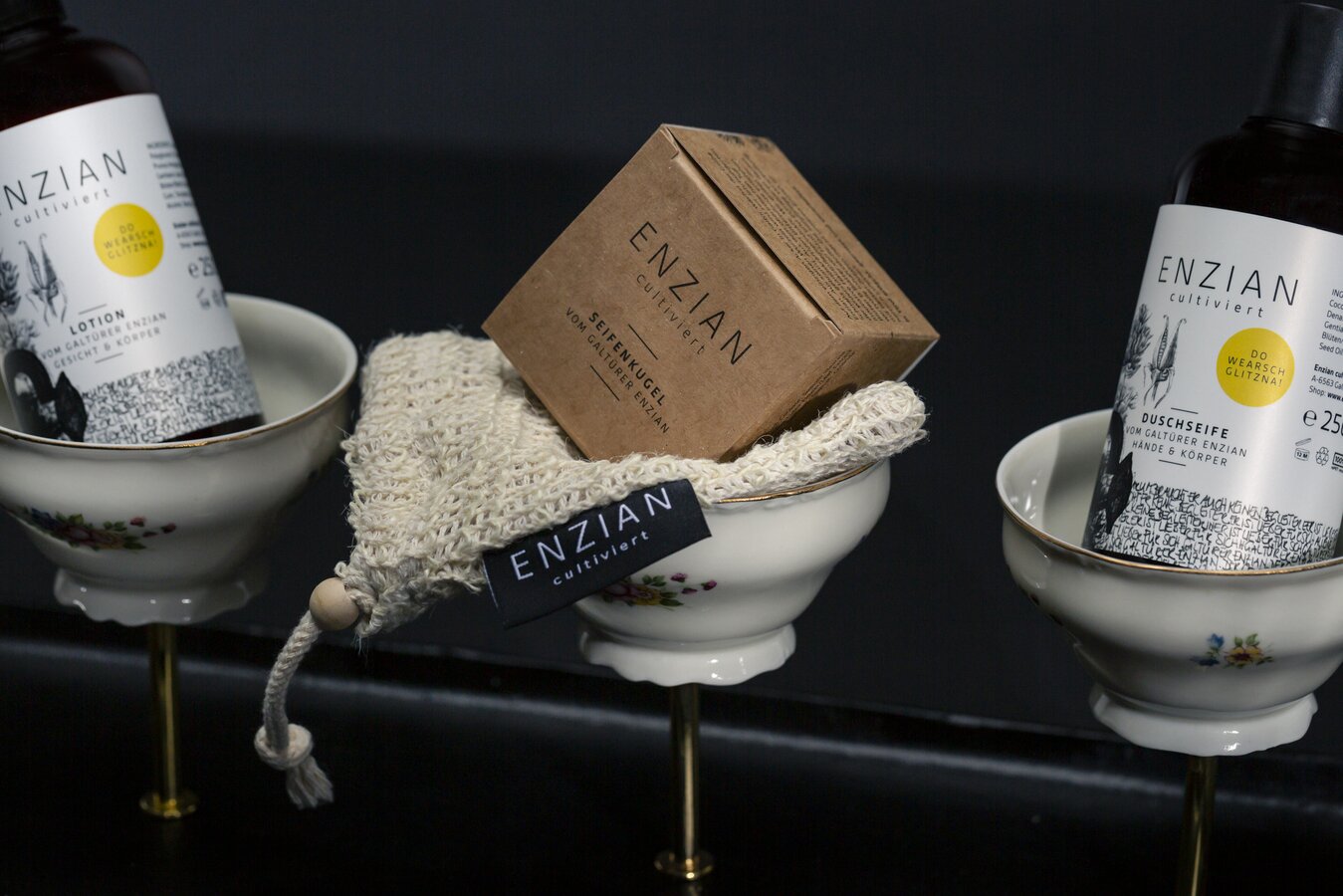 Heute hat sich der Nutzen des Enzians erweitert: Die Blätter und Blüten werden auch in hochwertigen Pflegeprodukten verwendet. Die intensive Handarbeit, die die Innovatorinnen hinter "Enzian Cultiviert" leisten, um jedes Jahr den Enzian zu kultivieren, ist bemerkenswert und zeigt die Leidenschaft für diese traditionsreiche Pflanze. Die daraus gewonnenen Produkte – von der Handcreme über Lotionen bis hin zu Duschseifen – bieten Pflege für die Haut und nutzen die entzündungshemmenden und regenerierenden Eigenschaften des Enzians.