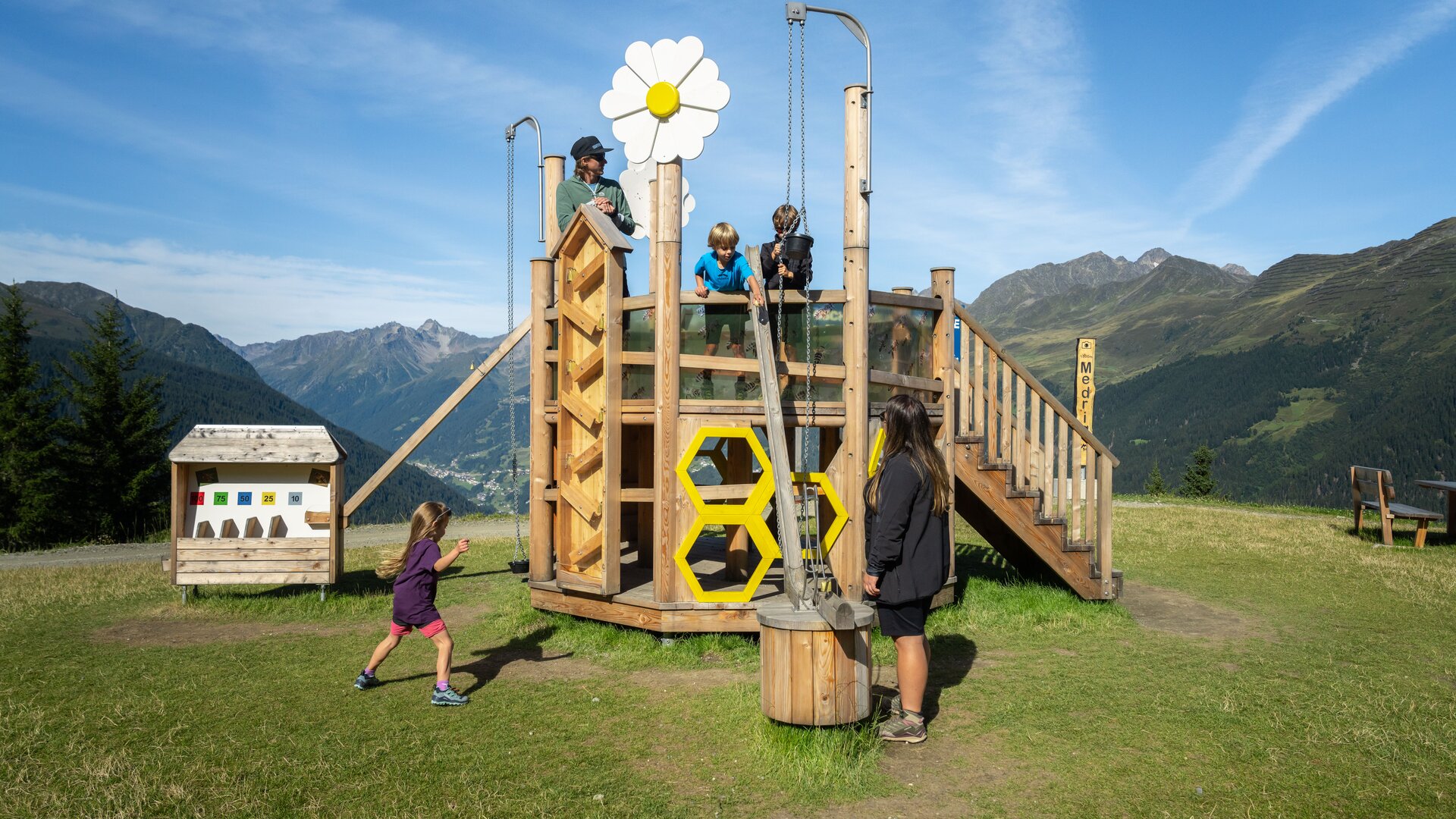 The Medrigalm in See is a true paradise for families. Seebi’s Bear World offers young adventurers a unique playground that combines movement, nature, and fun. With a 6-metre wooden bear, sparkling water features, and a variety of climbing and balancing activities, this destination guarantees an unforgettable day out.